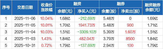 摩恩电气:融资净偿还212.69万元,融资余额1.68亿元(11-06)