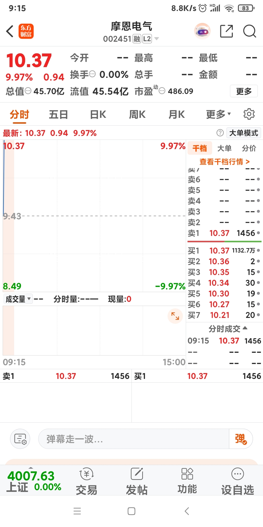 $摩恩电气(SZ002451)$ 一千多万手隔夜委托买单咋想的?