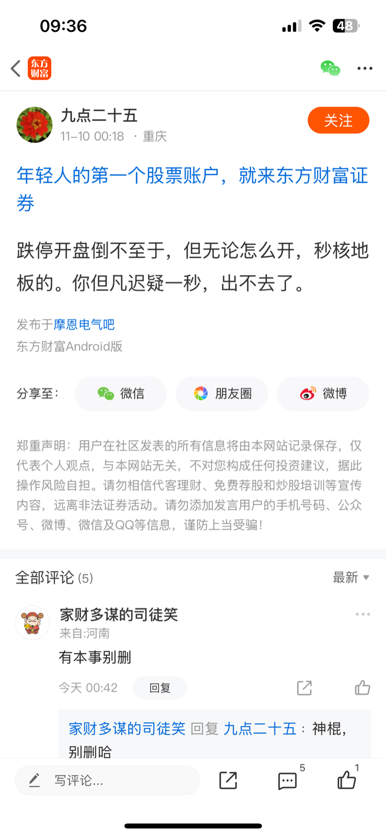 温馨提示: 1.根据《证券法》规定,禁止编造、传播虚假信息或者误导性信息,扰乱证券市场;2.用户在本社区发表的所有资料、言论等仅代表个人观点,与本网站立场无关,不对您构成任何投资建议。用户应基于自己的独立判断,自行决定证券投资并承担相应风险。《东方财富社区管理规定》