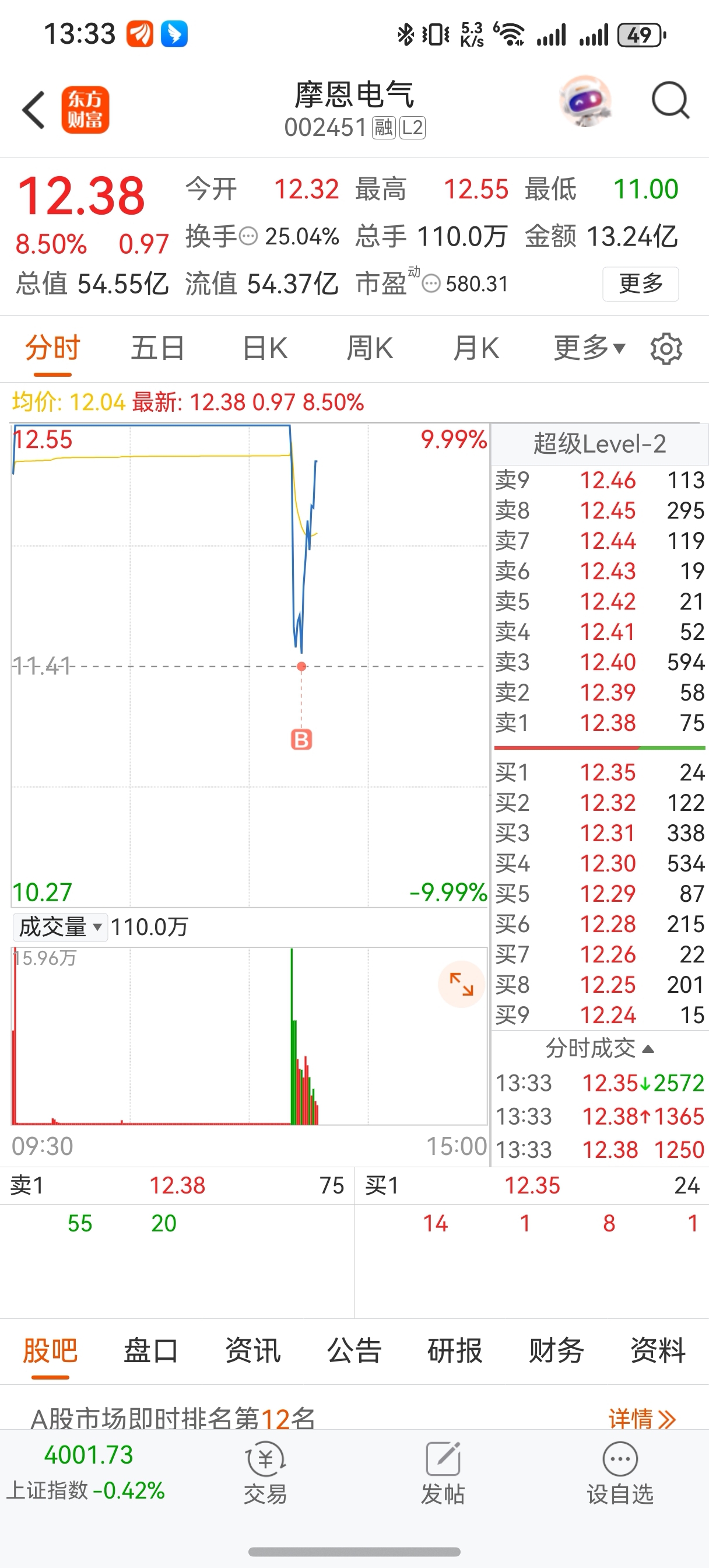 $摩恩电气(SZ002451)$ 明天能跑掉吗