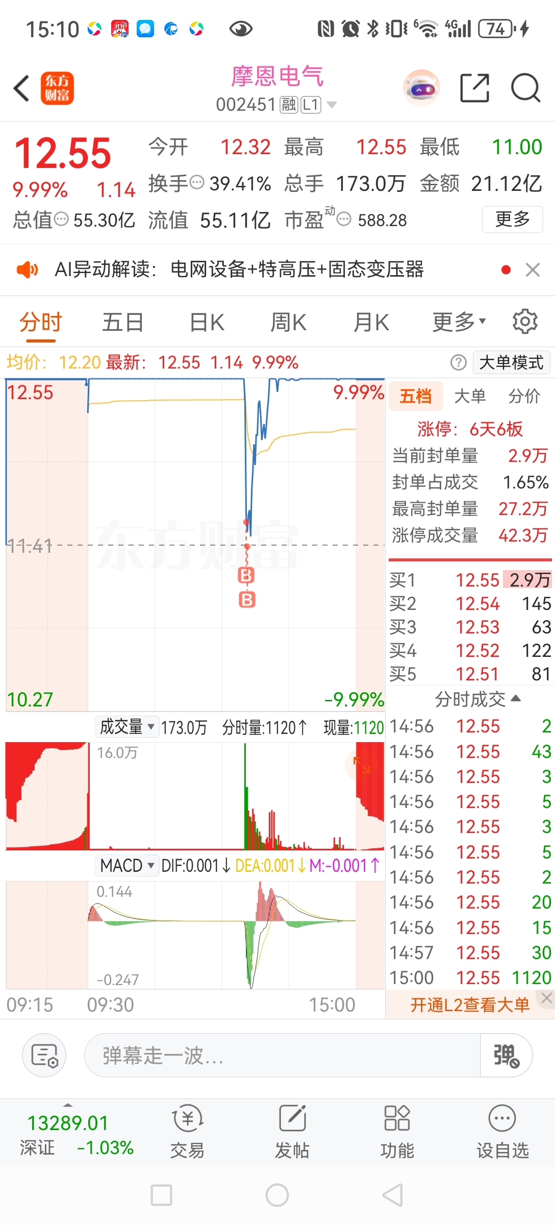 $摩恩电气(SZ002451)$ 明天开盘跌停加仓,涨停卖出