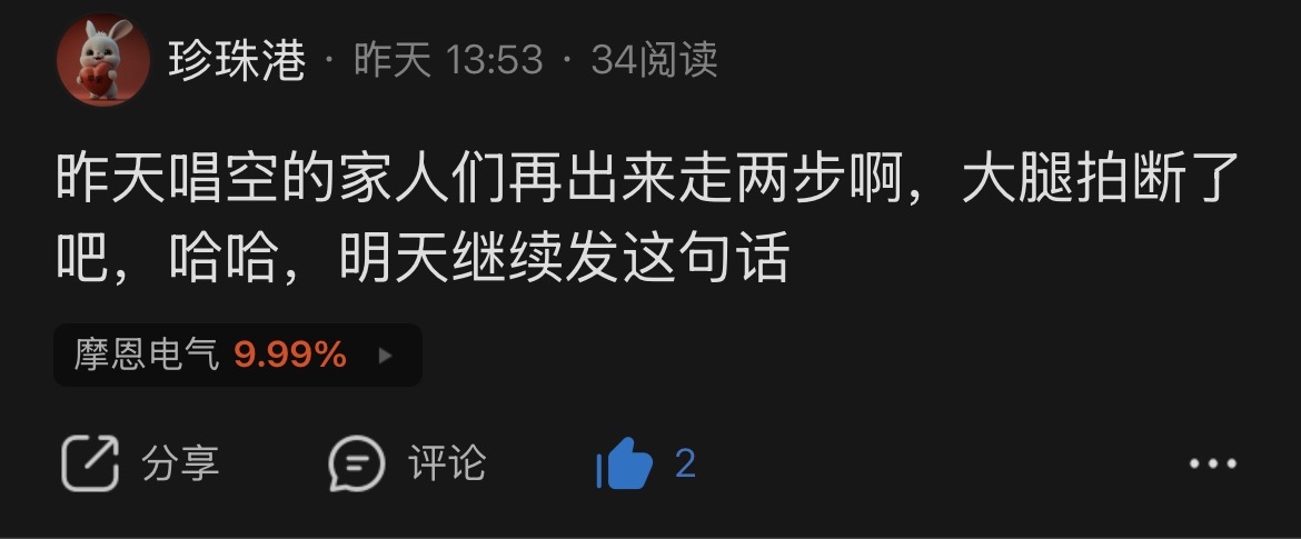 温馨提示: 1.根据《证券法》规定,禁止编造、传播虚假信息或者误导性信息,扰乱证券市场;2.用户在本社区发表的所有资料、言论等仅代表个人观点,与本网站立场无关,不对您构成任何投资建议。用户应基于自己的独立判断,自行决定证券投资并承担相应风险。《东方财富社区管理规定》