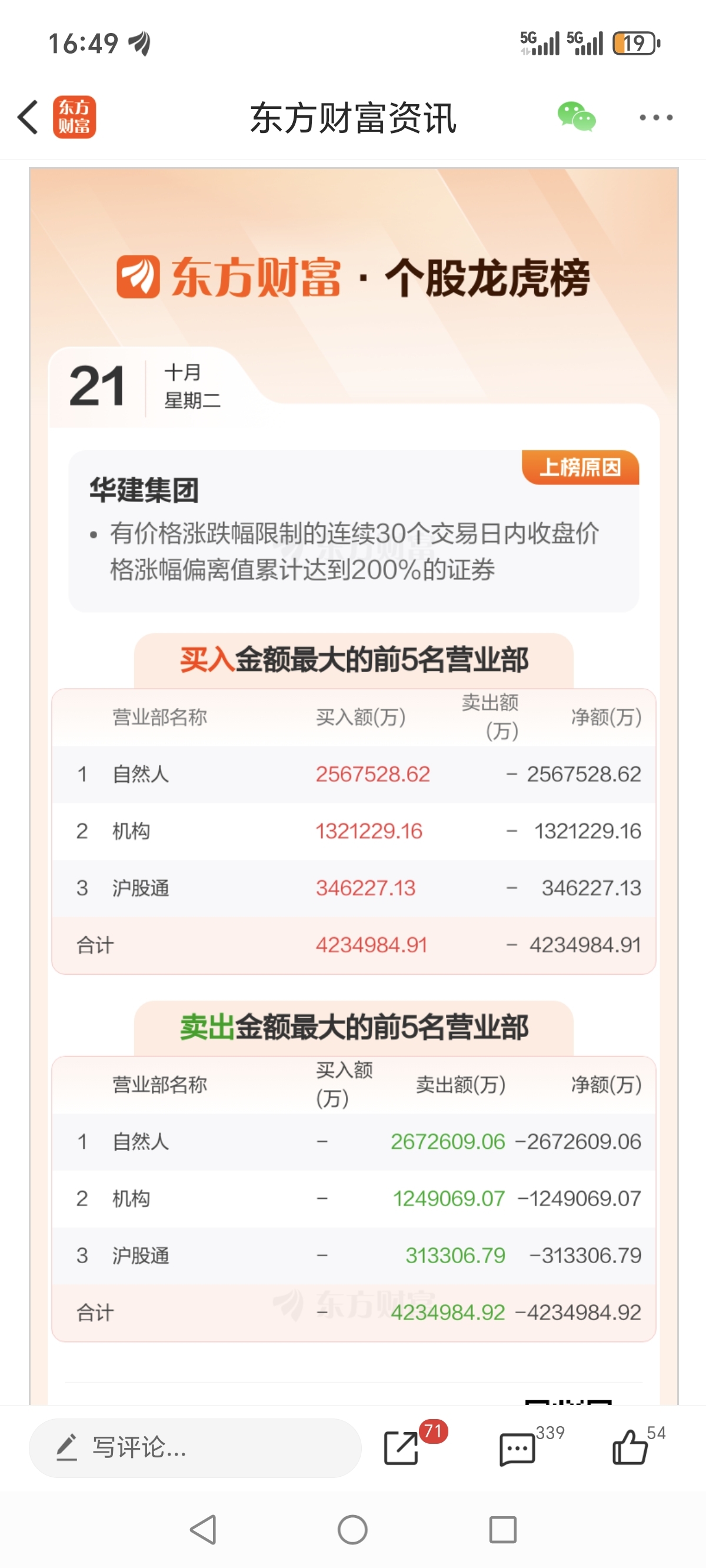 兄弟们,对比一下10.21号,华建集团的走势就知道明天该怎么办了,同样的龙虎榜,