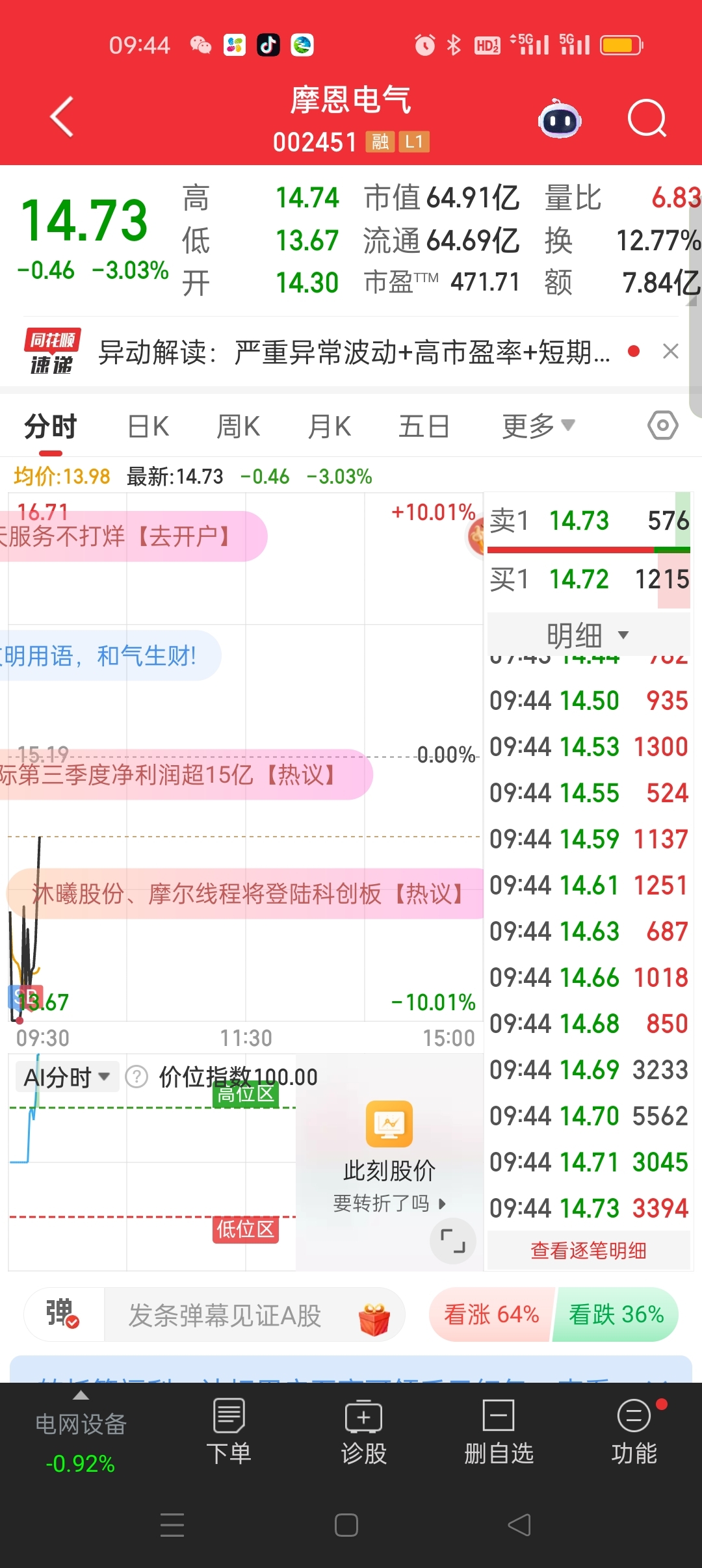 $摩恩电气(SZ002451)$ 来不及撤单失去了先手只能sb了