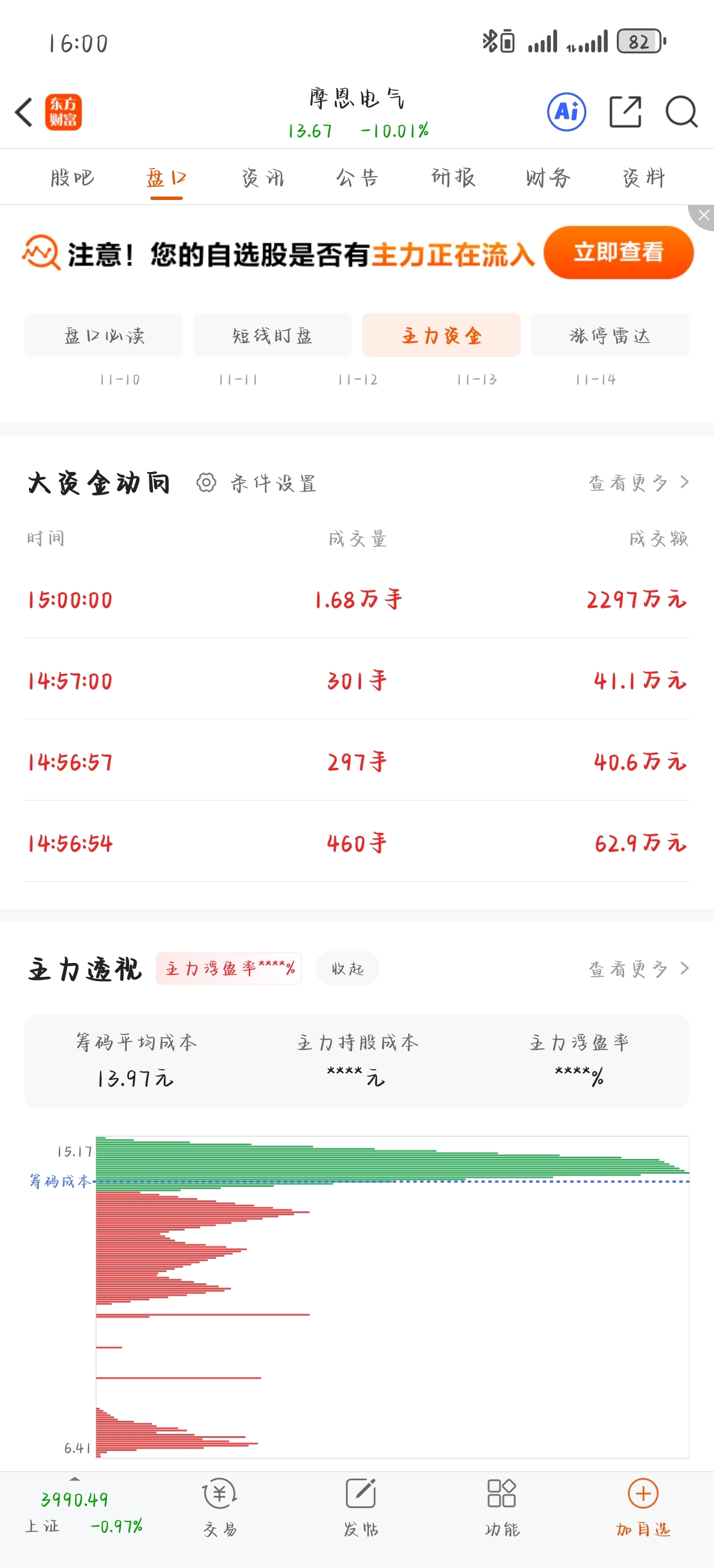 $摩恩电气(SZ002451)$ 尾盘抢筹呀,又来新主力了