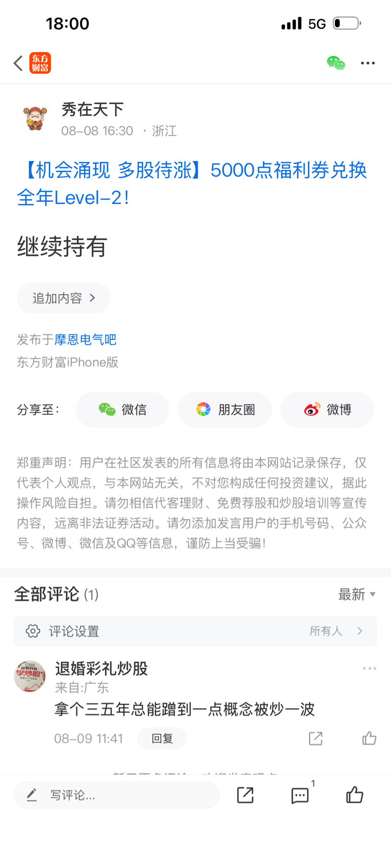 温馨提示: 1.根据《证券法》规定,禁止编造、传播虚假信息或者误导性信息,扰乱证券市场;2.用户在本社区发表的所有资料、言论等仅代表个人观点,与本网站立场无关,不对您构成任何投资建议。用户应基于自己的独立判断,自行决定证券投资并承担相应风险。《东方财富社区管理规定》