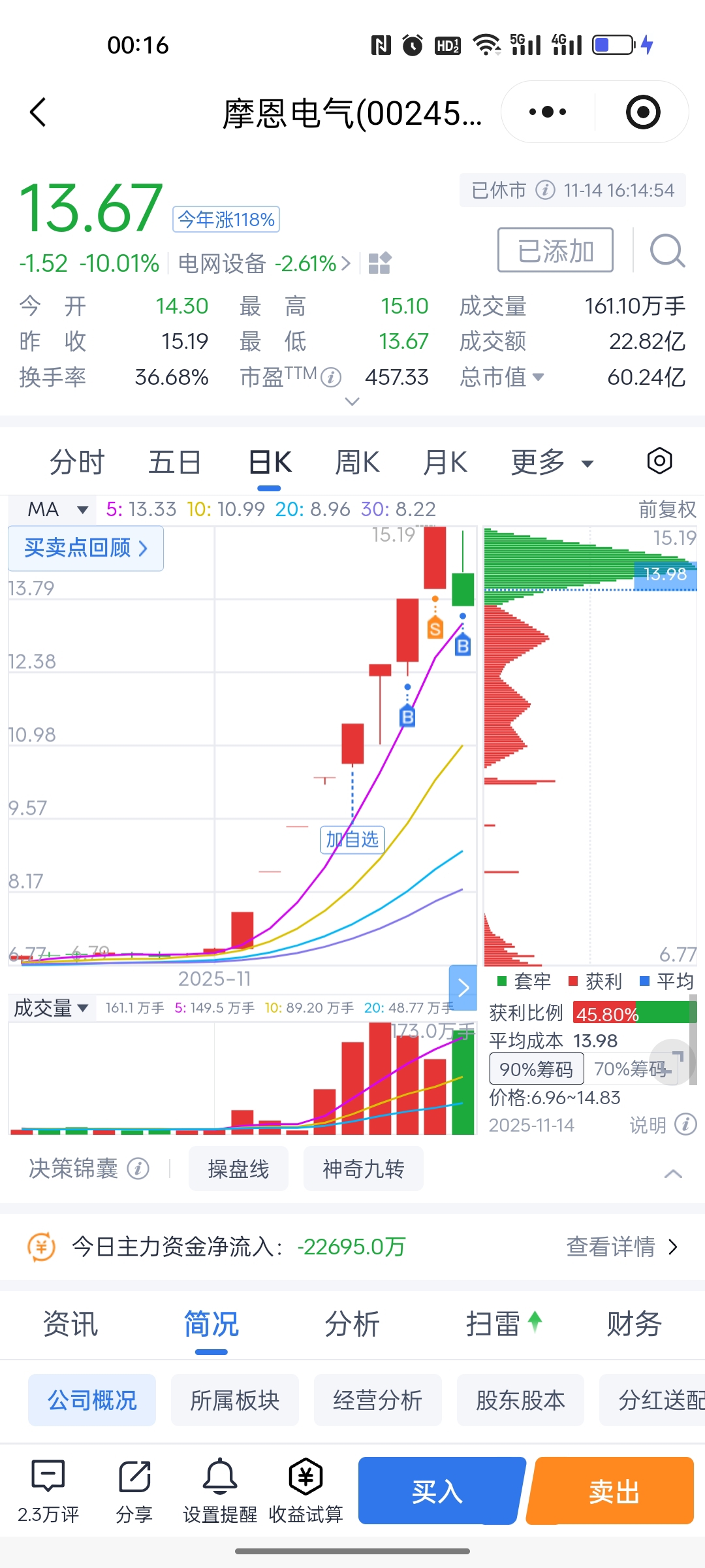 $摩恩电气(SZ002451)$ 昨天卖了,今天接回,干就完了