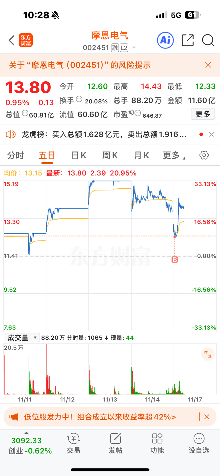 $摩恩电气(SZ002451)$ 给喝点汤也行主力,我不贪,能涨停最好