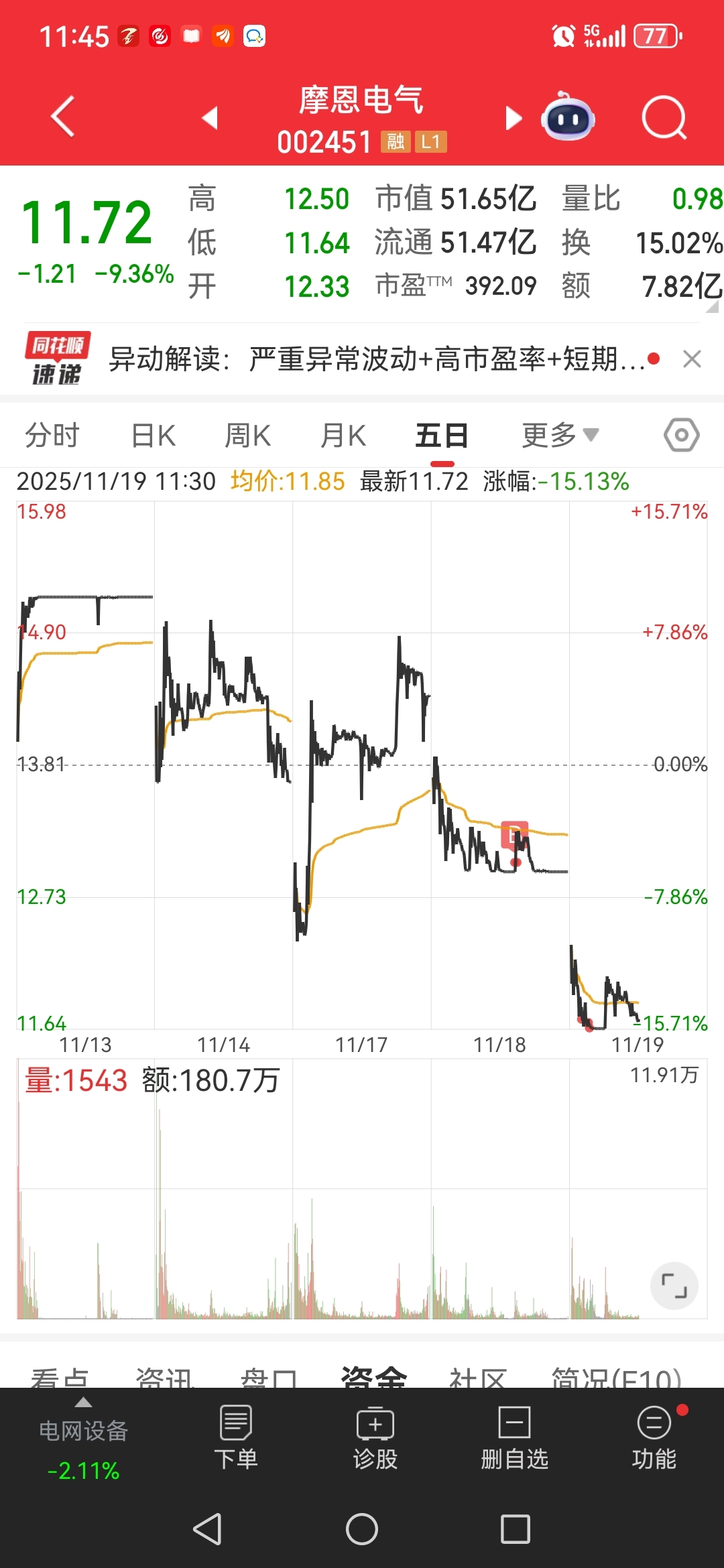 $摩恩电气(SZ002451)$ 昨天海陆重工,我就是这样买的,今天继续买摩恩电气,明天涨停