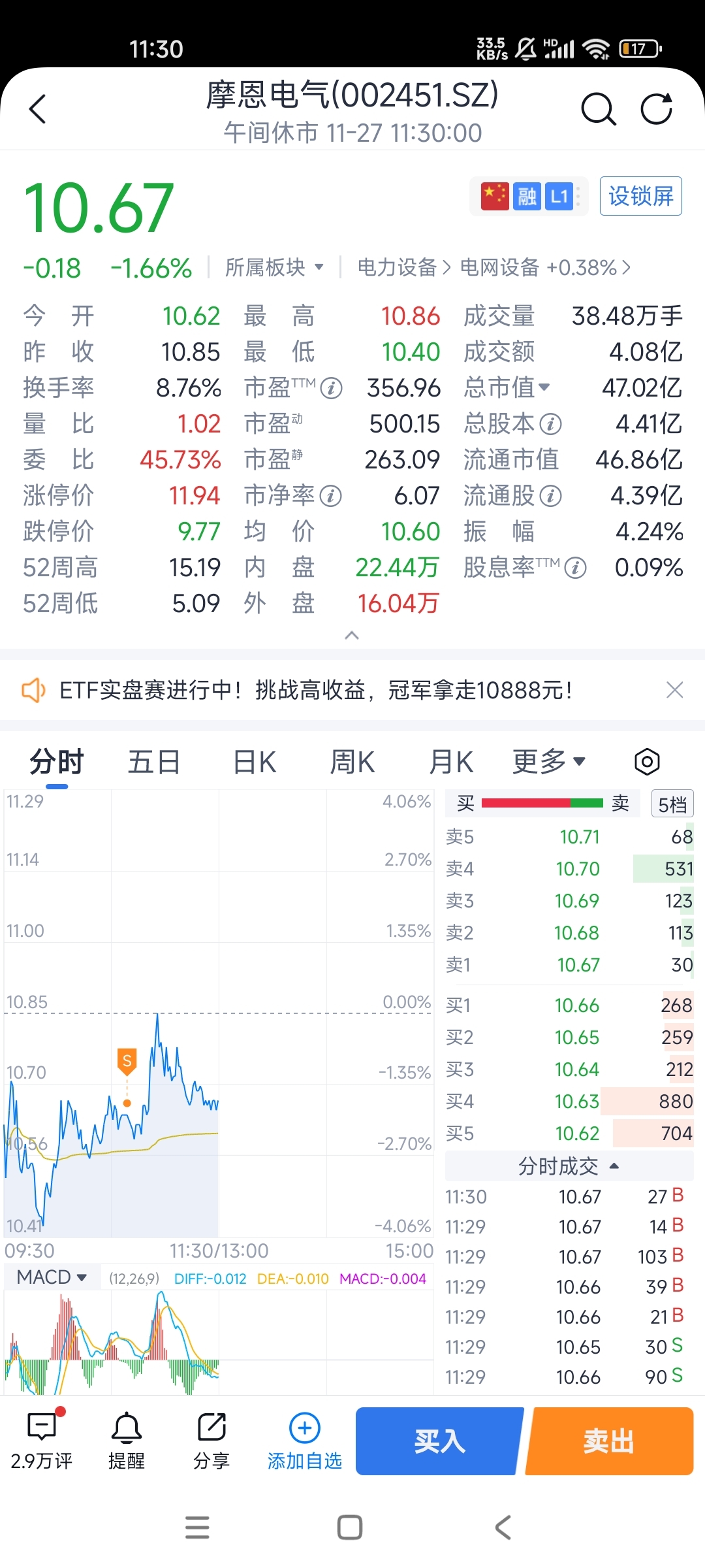 卖出摩恩电气,赚了4个点,摩恩电气,我不卖它不涨,一卖它就涨。买进安克创新又赚3