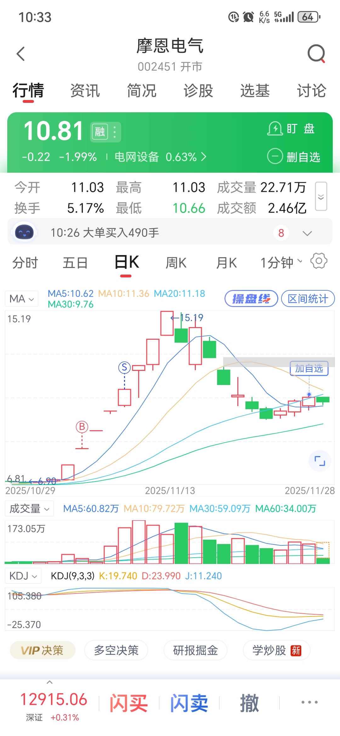 $摩恩电气(SZ002451)$ 再来根小阳线就上车