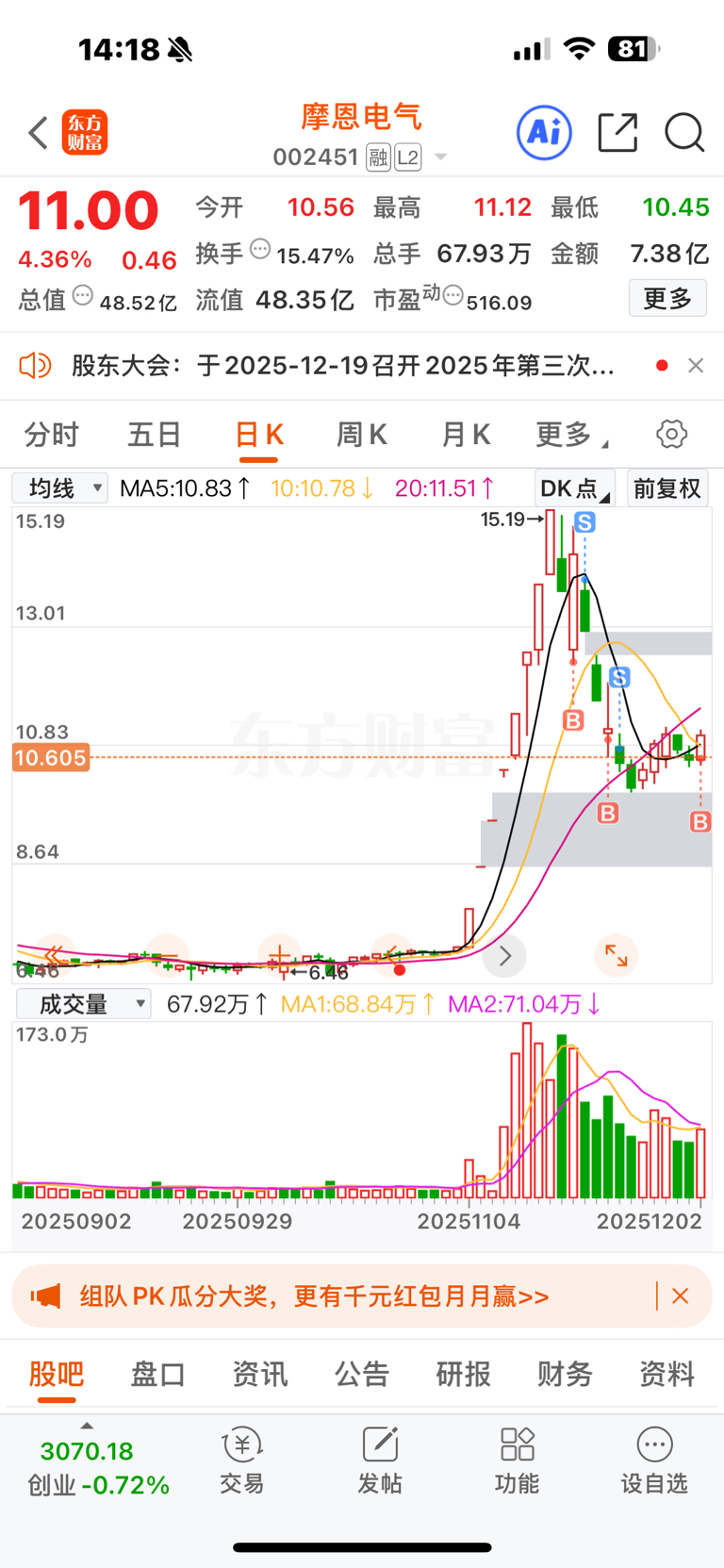 $摩恩电气(SZ002451)$ 今天吃肉,明天涨停