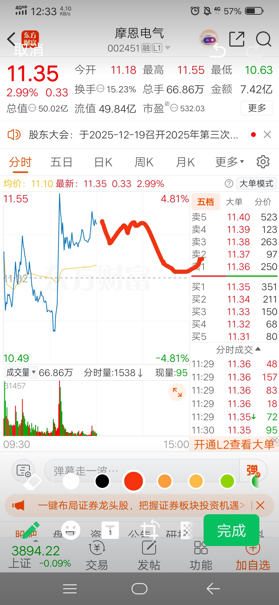 别给自己希望。今天就是这个走势。没什么起色的。收盘在10.99这样。