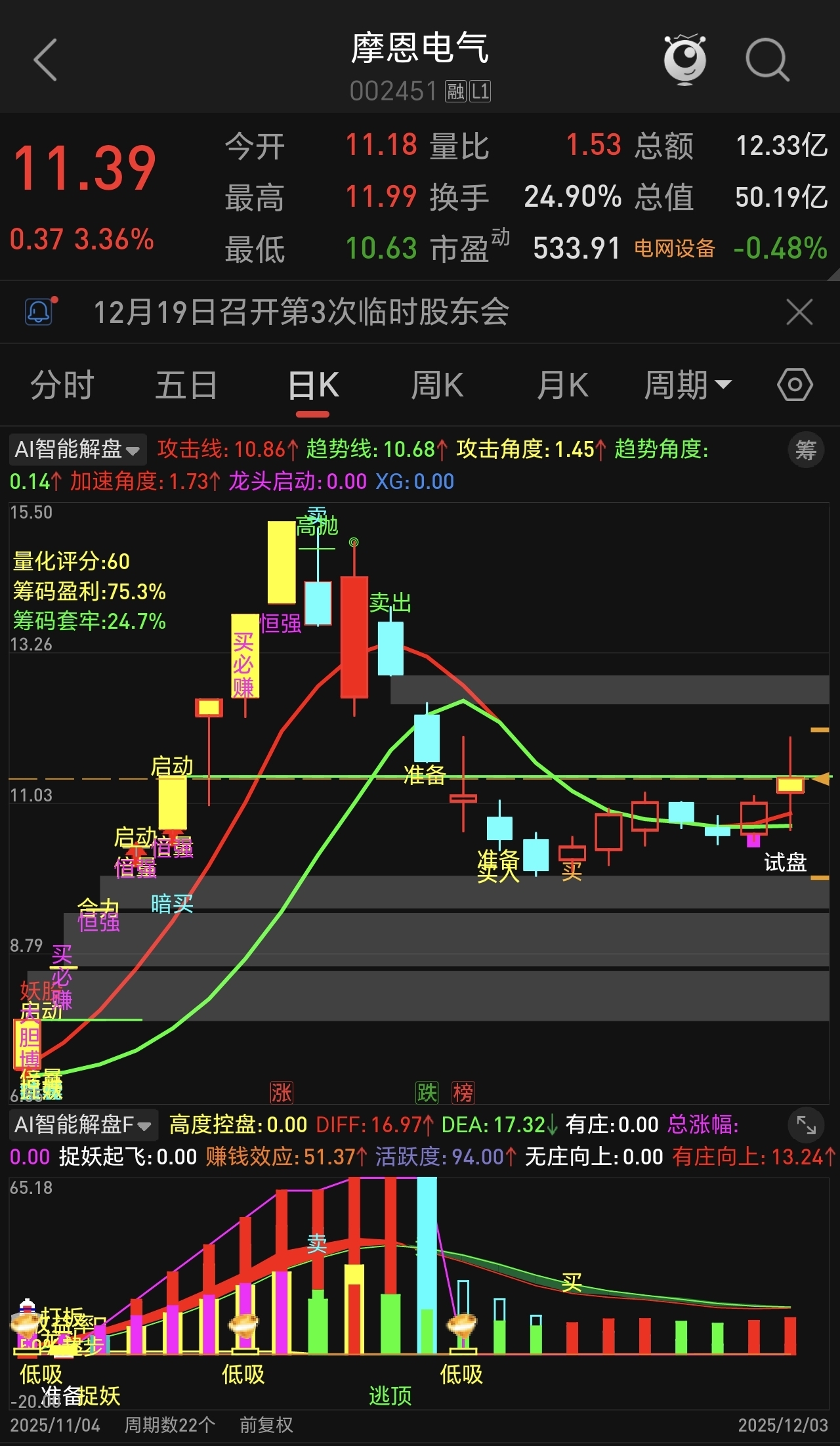 $摩恩电气(SZ002451)$ 今天突破11.41博第二波,预向上20%