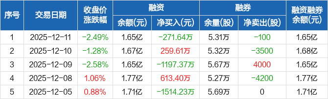 摩恩电气:融资净偿还271.64万元,融资余额1.65亿元(12-11)