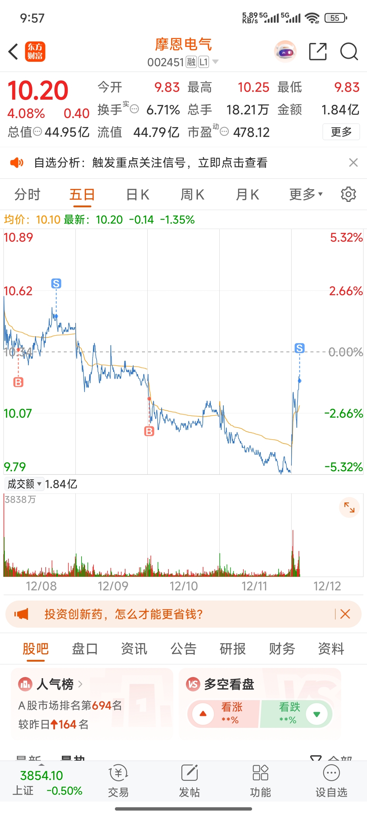 $摩恩电气(SZ002451)$ 10S