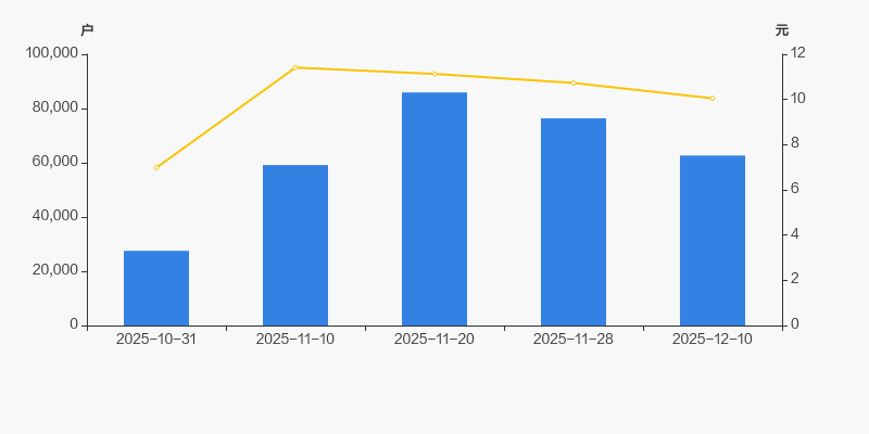 2025年10月31日至今,公司股东户数成倍增长,区间涨幅达127.56%。2025年10月31日至2025年12月10日区间股价上涨43.98%。
