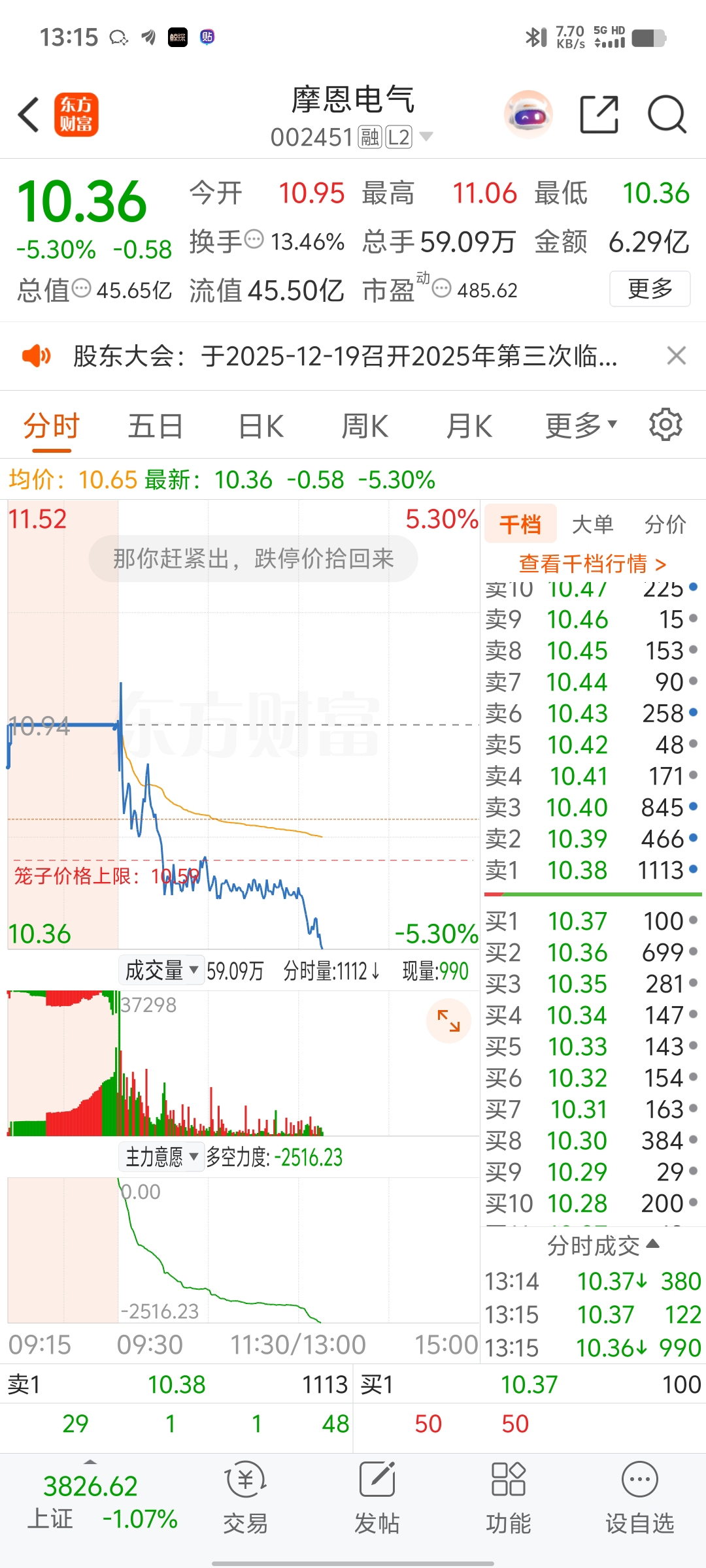 $摩恩电气(SZ002451)$ 我来抄底了,感谢不差钱大哥割肉