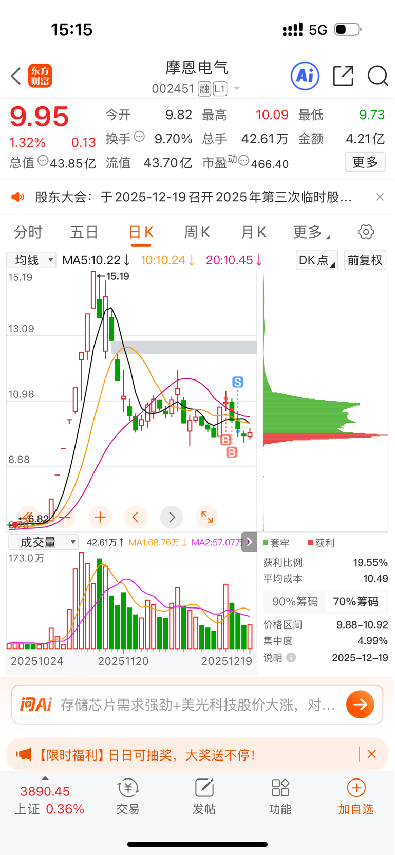$摩恩电气(SZ002451)$ 今年做的最失败,亏损最大的一只票,三天满仓亏我10个点