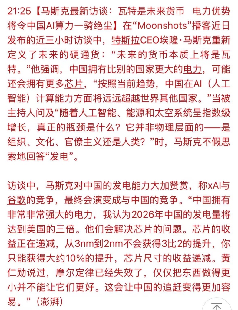 马斯克!Al的尽头就是电力