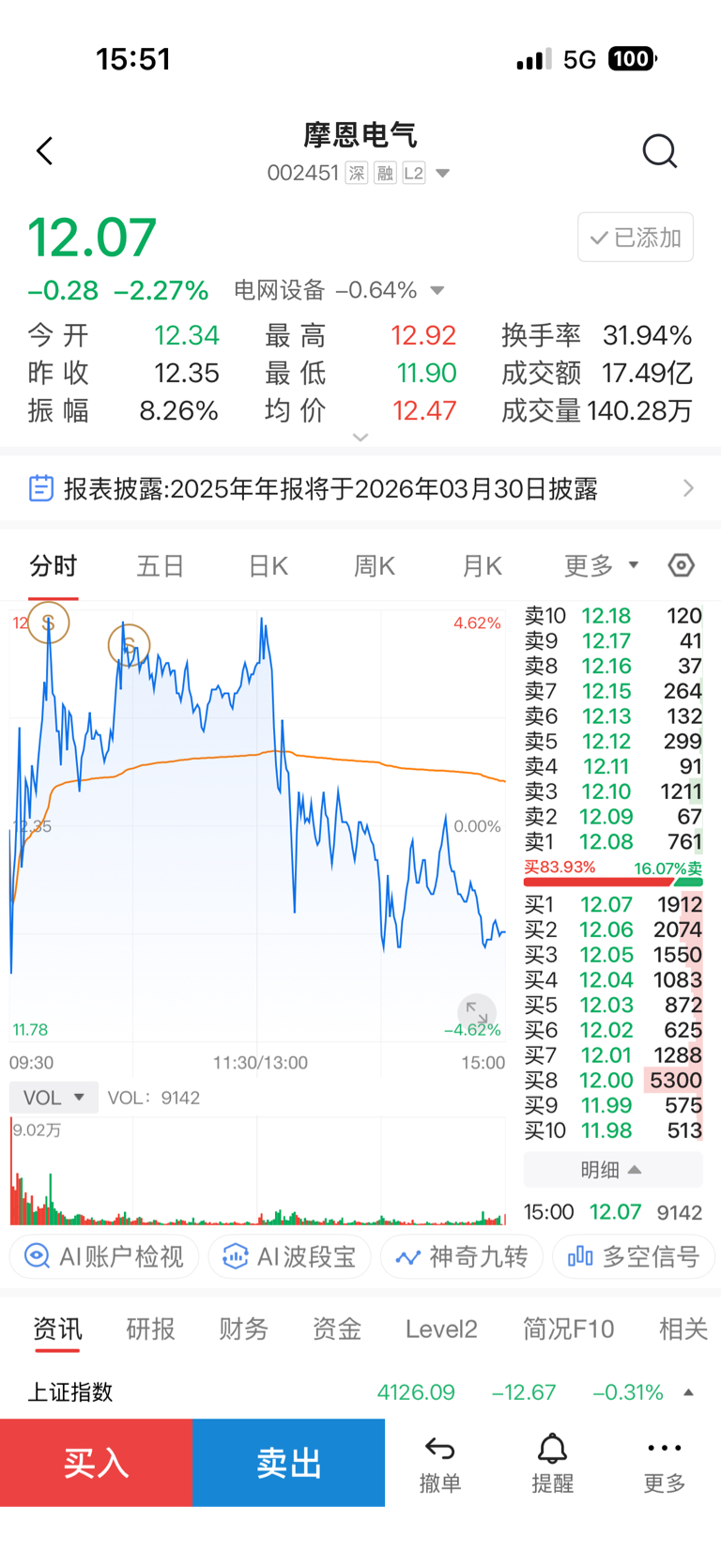 $摩恩电气(SZ002451)$ 还好,还好,今天跑光了,明天如果有水下3个点附近机会再回来