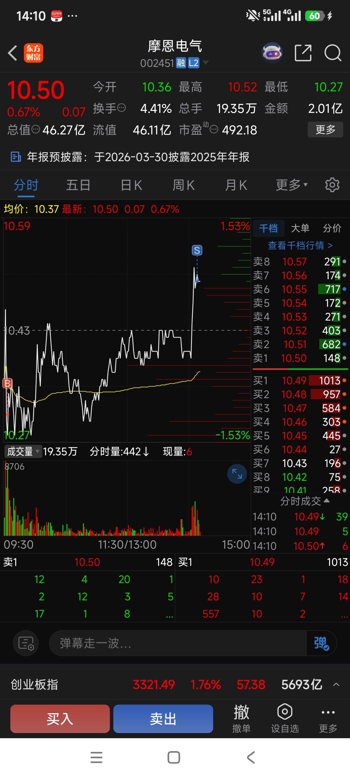 $摩恩电气(SZ002451)$ 赚毛线