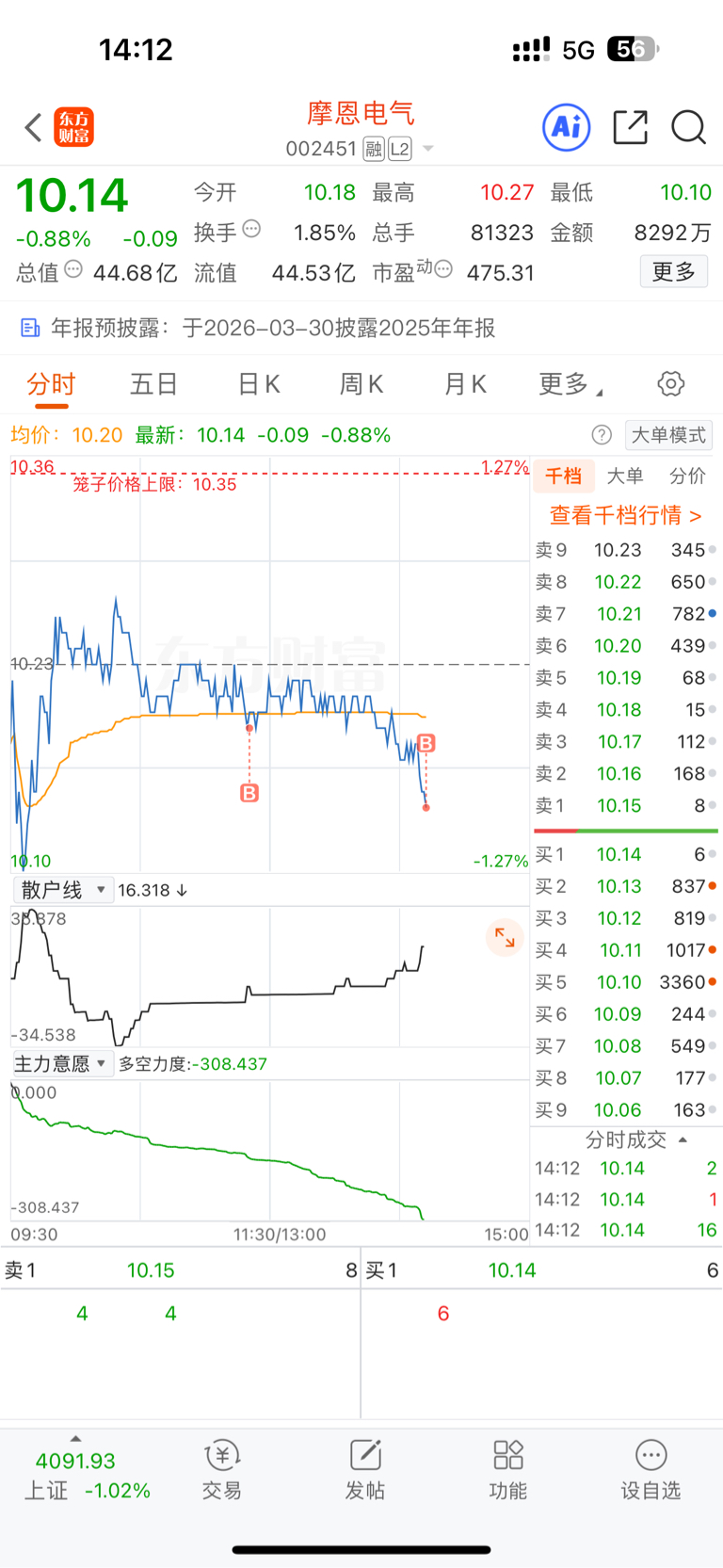 $摩恩电气(SZ002451)$ 早盘没注意还好又下来了,继续吃,一股不卖!
