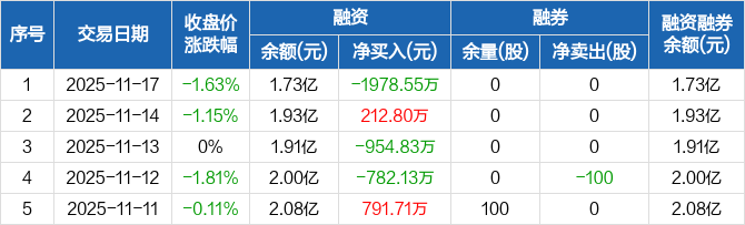 长高电新:融资净偿还1978.55万元,融资余额1.73亿元(11-17)