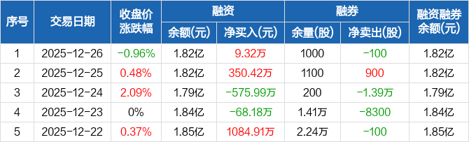 长高电新:融资净买入9.32万元,融资余额1.82亿元(12-26)
