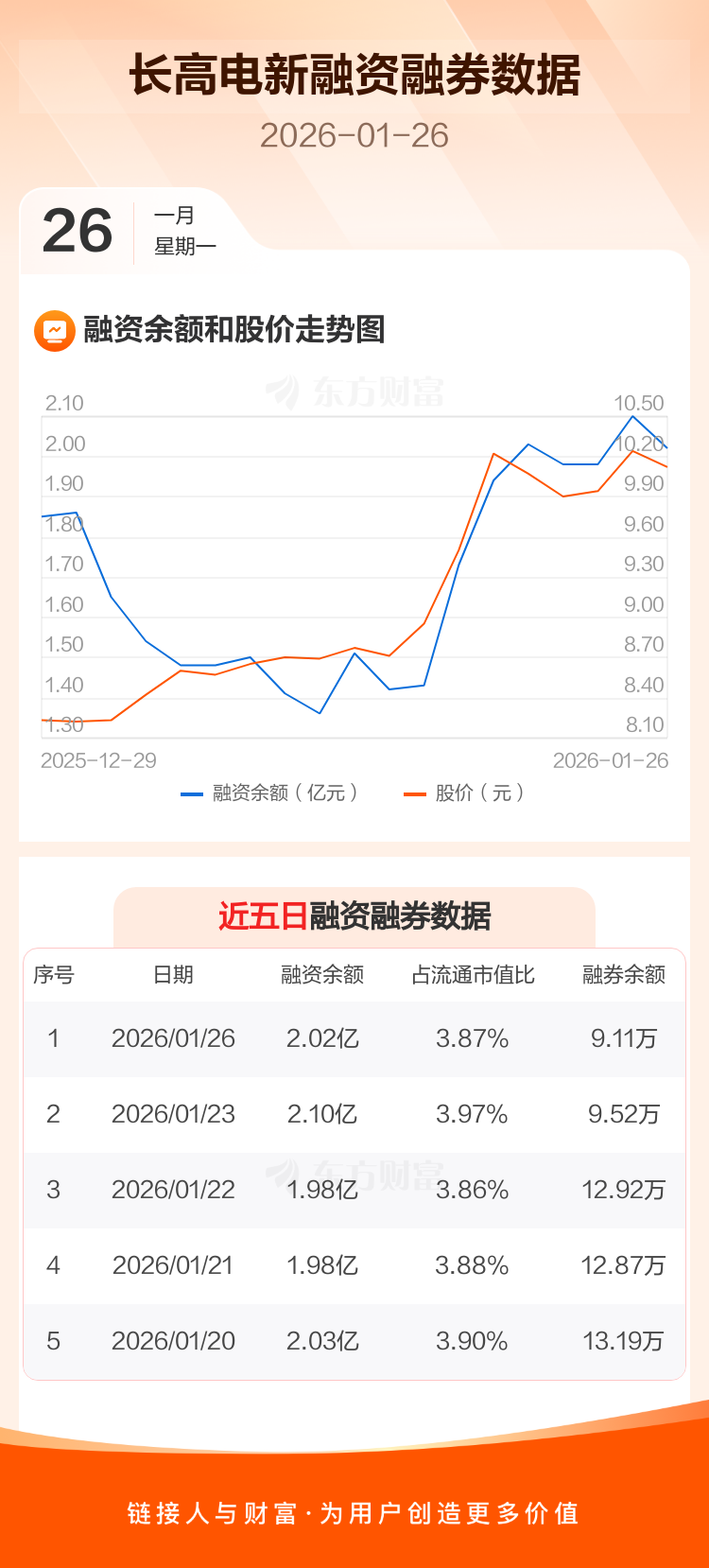 交易所最新数据显示,长高电新于2026年1月26日获融资买入2930.36万元,融资偿还3661.50万元,当日融资净偿还731.13万元。目前,该股融资余额2.02亿,占流通市值比例为3.87%。