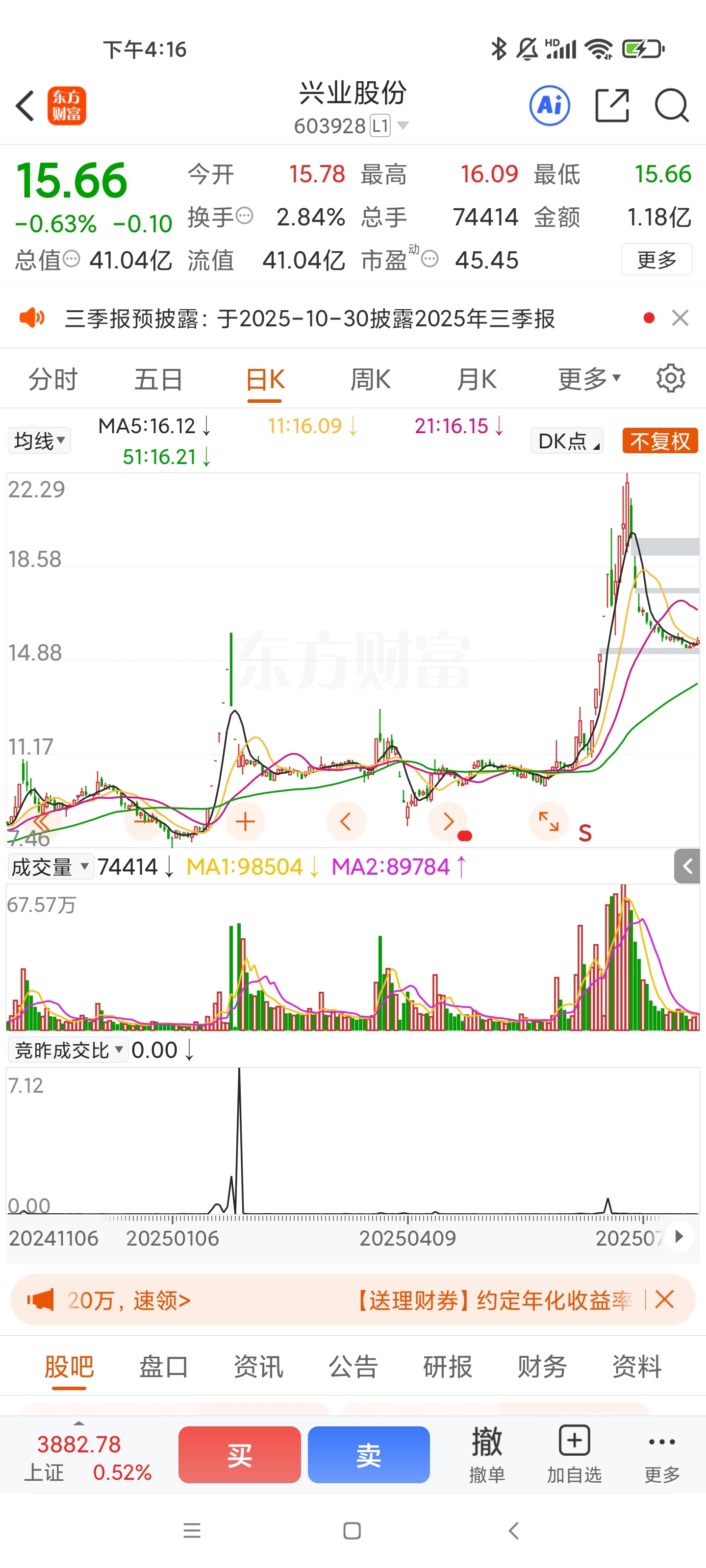 过完节华软大概6.37位置可以低吸,时间大概也是几个月后走二波,因为去年的兴业股