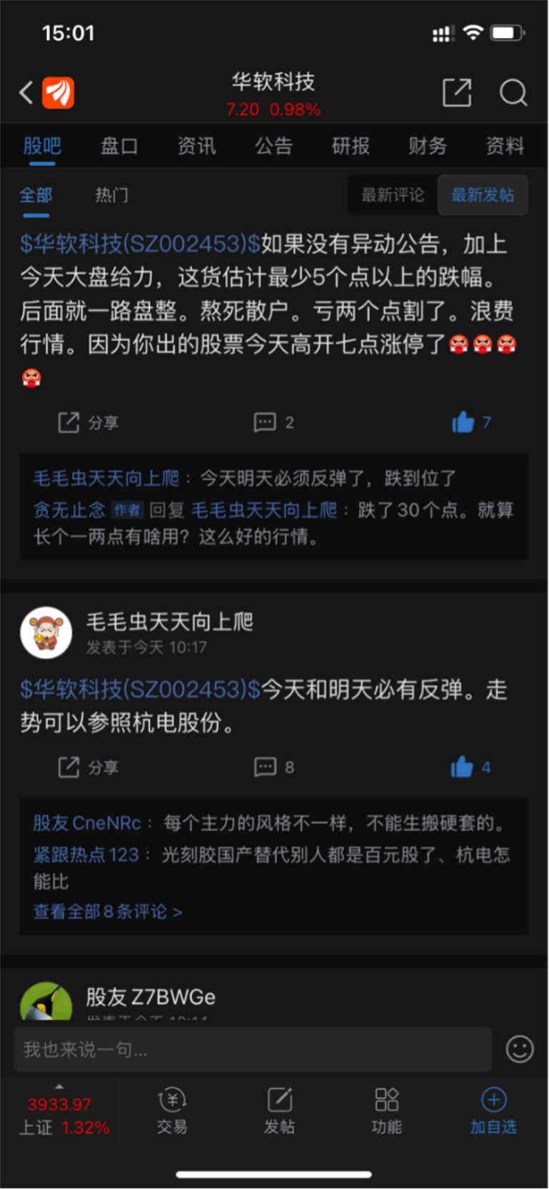 $华软科技(SZ002453)$ 今天早上跌两个点的时候就说今天明天会反弹,明天拭目以待。