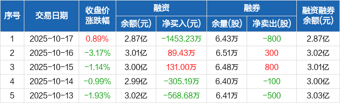 华软科技:融资净偿还1453.23万元,融资余额2.87亿元(10-17)