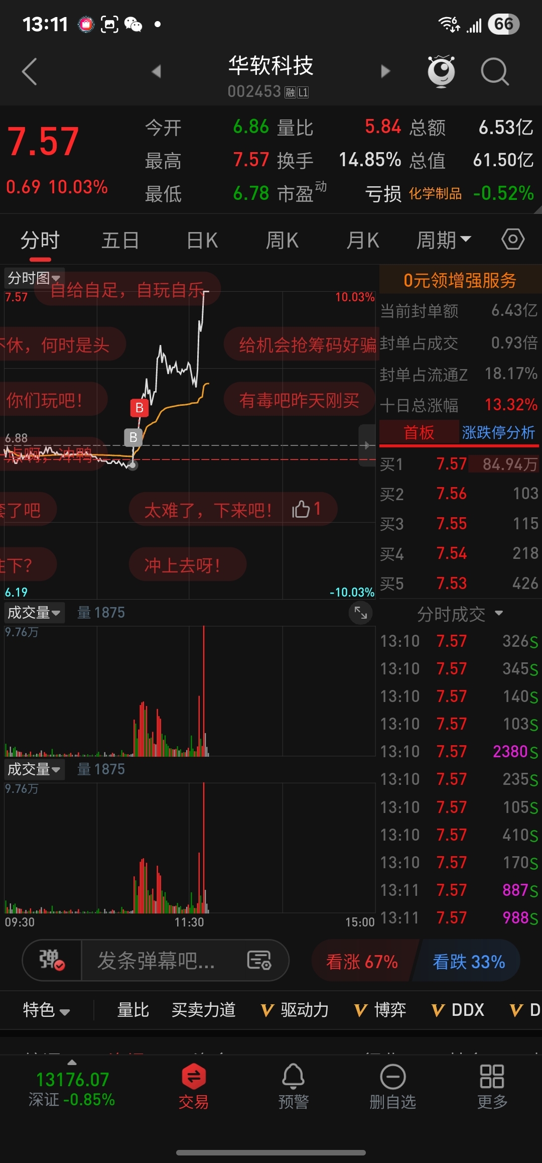 $华软科技(SZ002453)$ 买完就涨停,牛牛牛