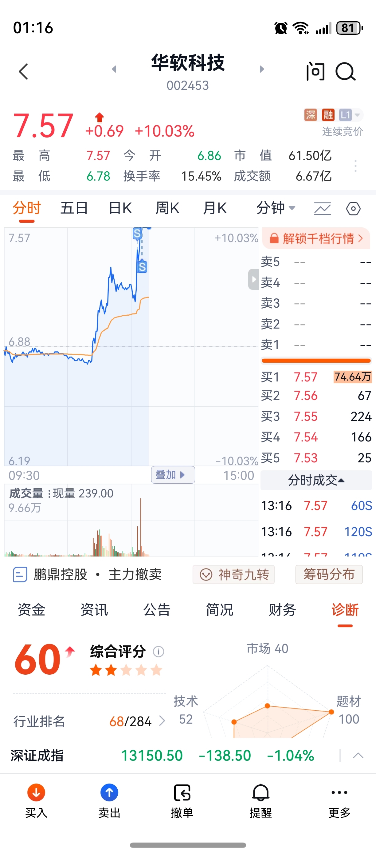 $华软科技(SZ002453)$ 谢谢落袋为安