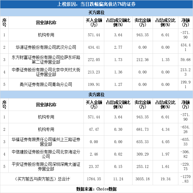 多主力现身龙虎榜,华软科技跌停(12-01)