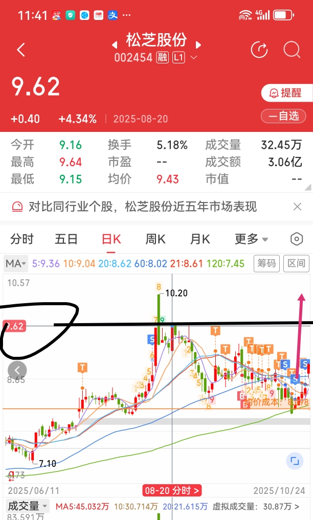 $松芝股份(SZ002454)$  不像是突破,根本没有突破的样子