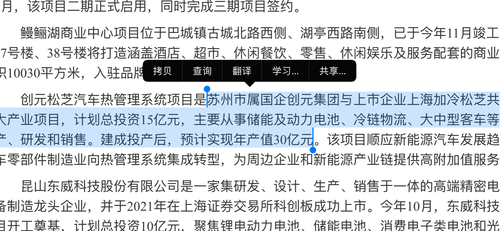 近期可能落地项目1、年底昆山松芝创元工厂交付使用,储能电池热管理系统开足马力生产2、金龙客车内部改革实施,零配件集采,松芝股份做为深度绑定金龙客车客户,以后的空调热管理系统供应更会大幅度提升.3、松芝股份依托江淮松芝空调,持续配套尊界SUV、MPV