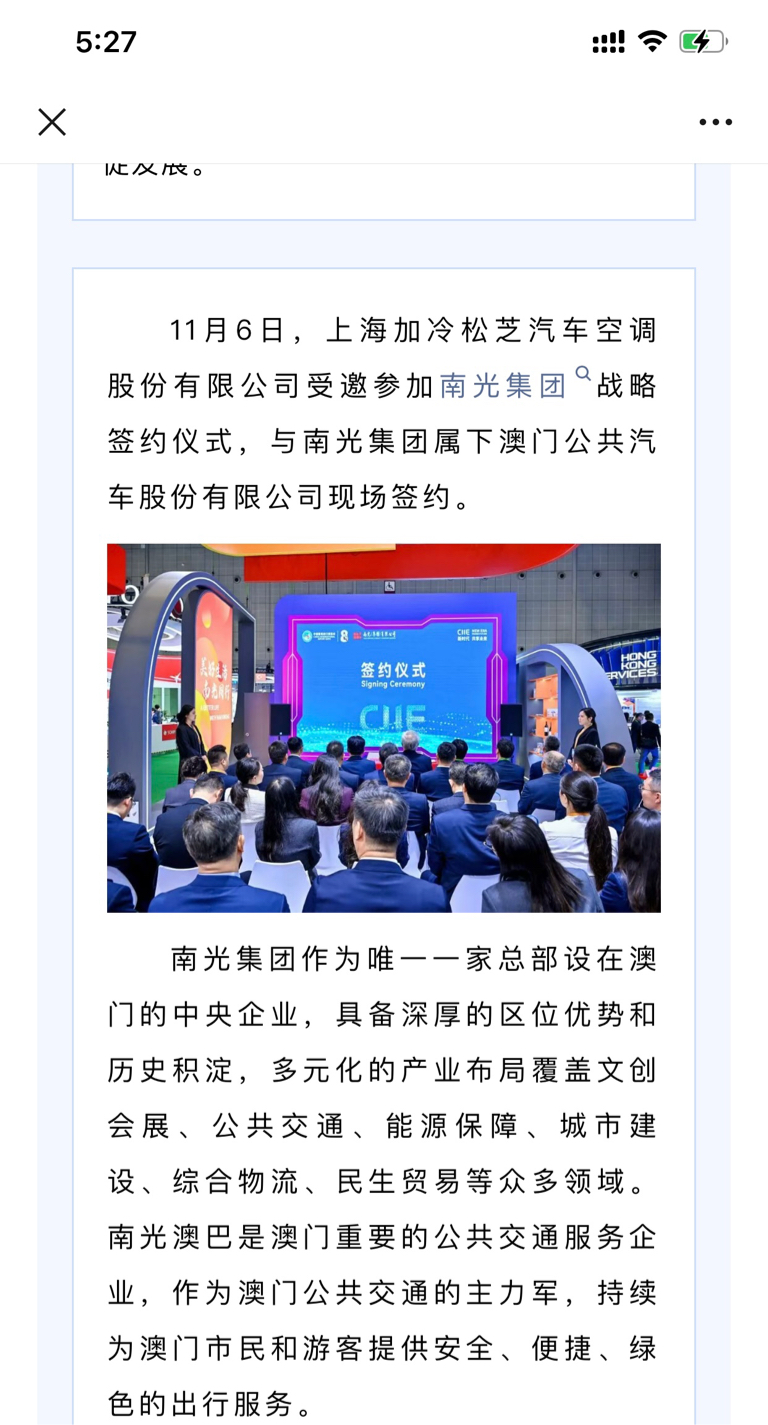 $松芝股份(SZ002454)$ 这是大客户,为唯一驻澳央企南光(集团)有限公司的下属二级企业。目前经营特区政府公共巴士第三标段线路共57条,占全澳营运线路63.33%,日均载客量33万人次。#收盘点评# #强势机会#