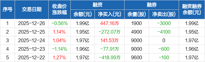 松芝股份:融资净买入447.16万元,融资余额1.99亿元(12-26)