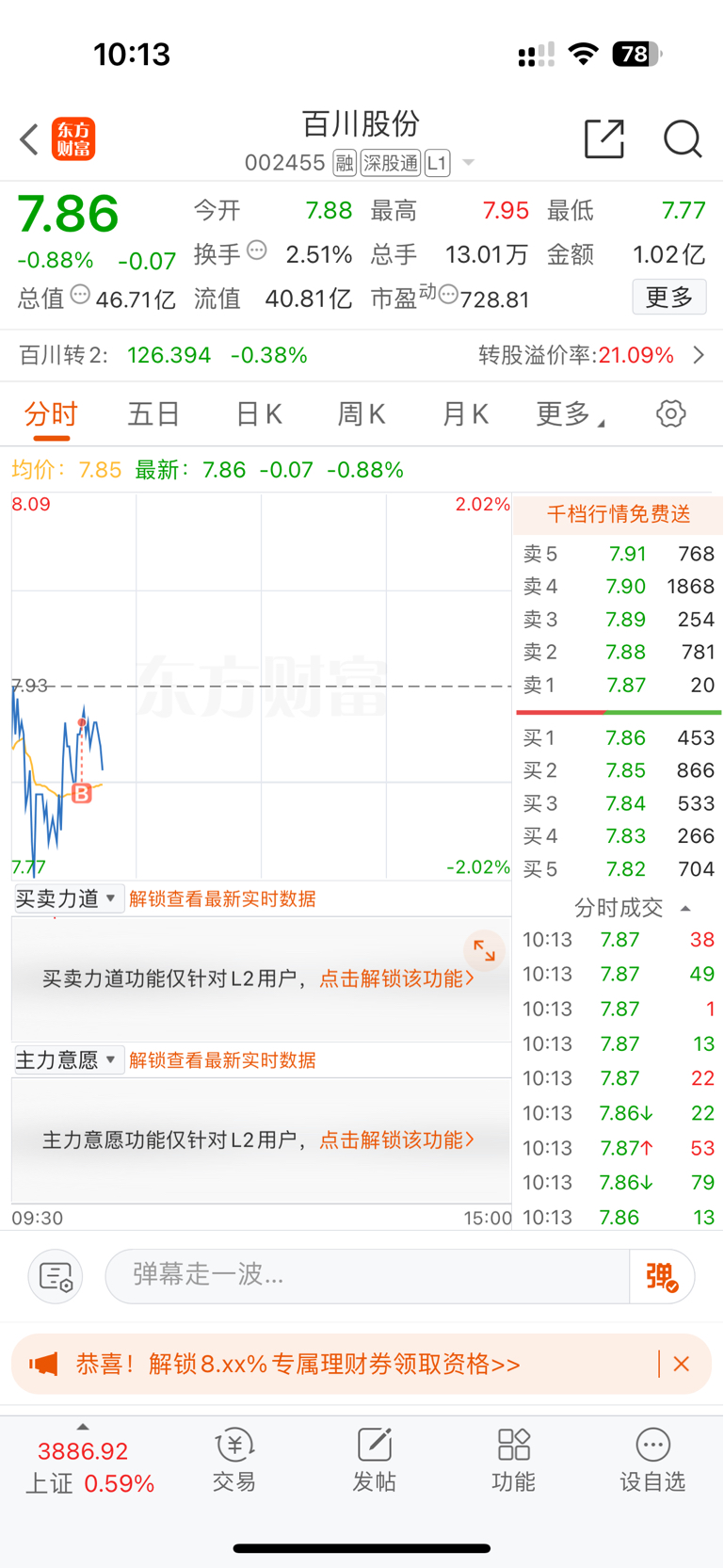 $百川股份(SZ002455)$ 挂上面了,,,哎