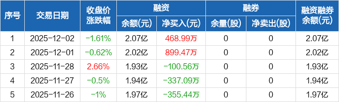 百川股份:融资净买入468.99万元,融资余额2.07亿元(12-02)