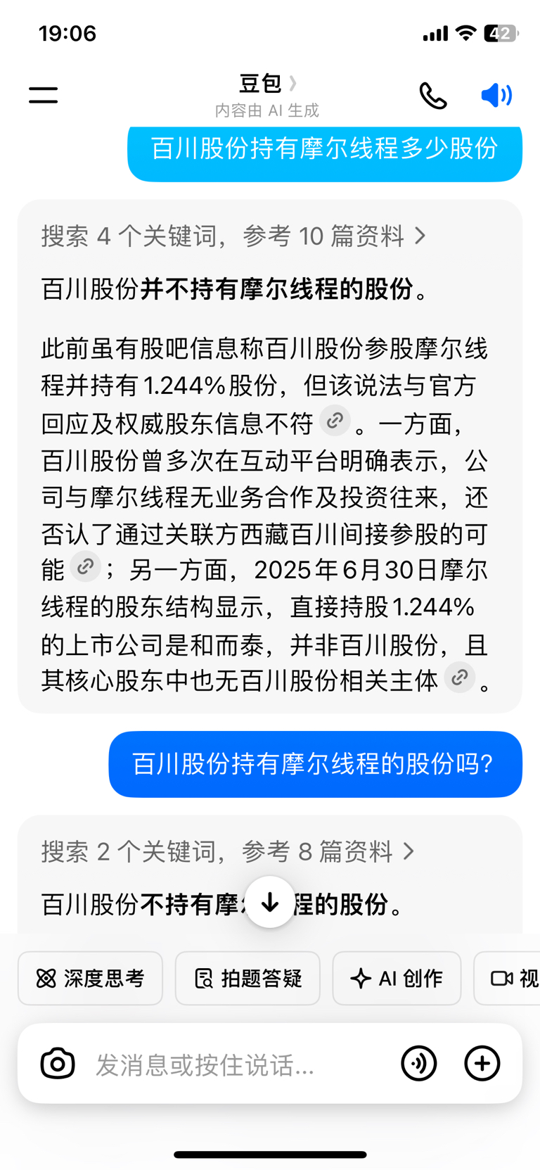 $百川股份(SZ002455)$ 持有多少摩尔线程