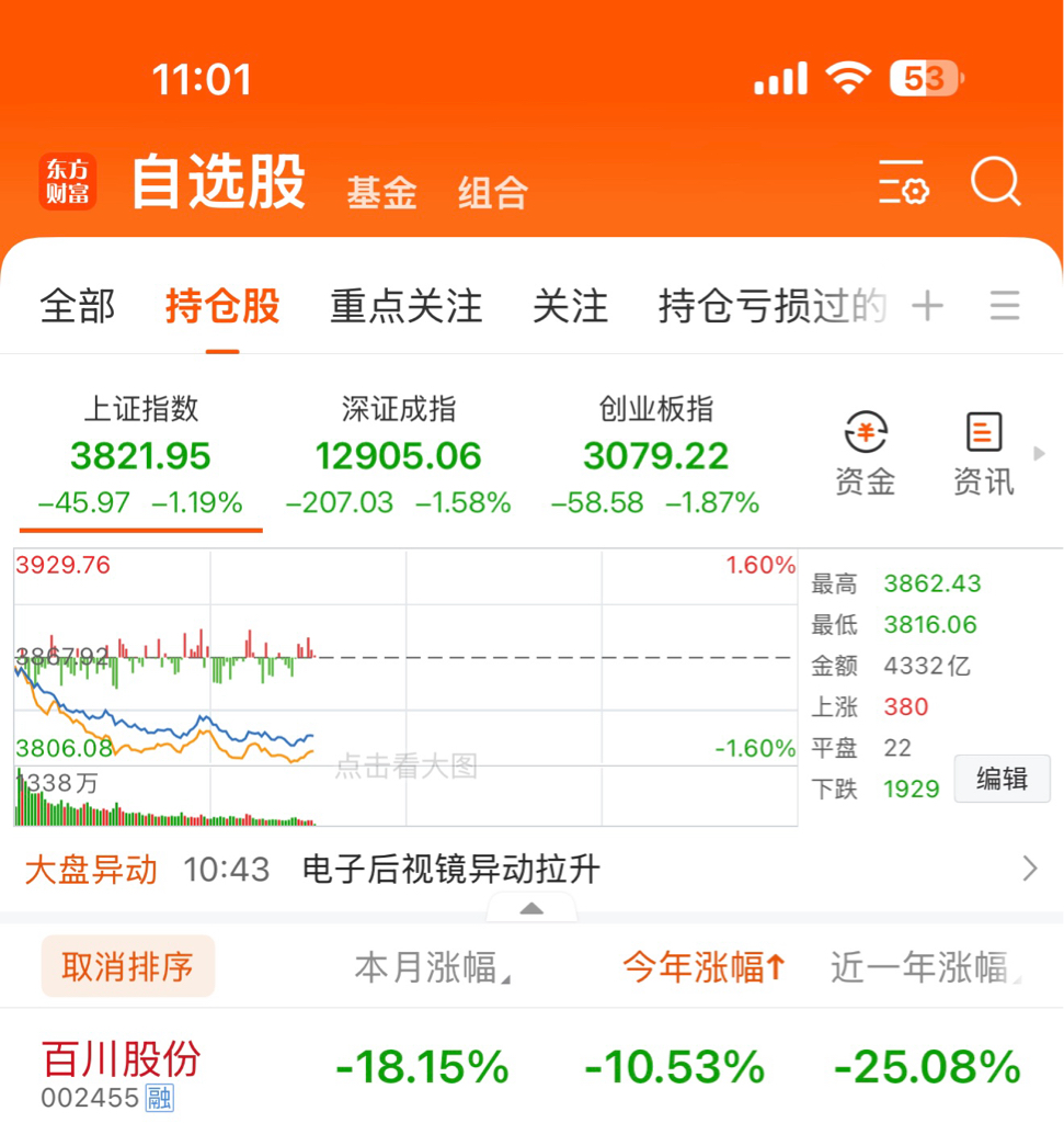 $百川股份(SZ002455)$ 百川今年到底涨什么了?大盘都涨这么多,你跌的都可怜