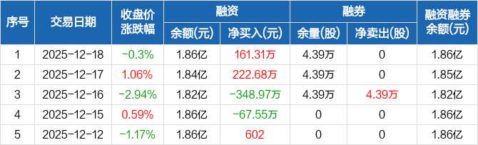 百川股份:融资净买入161.31万元,融资余额1.86亿元(12-18)