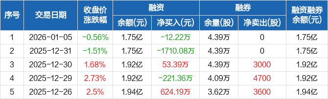 百川股份:融资净偿还12.22万元,融资余额1.75亿元(01-05)