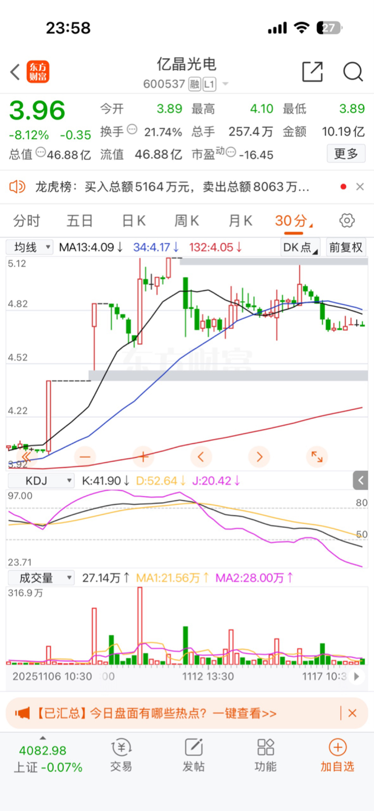 昨天收盘就感觉不对劲,跟亿晶光电的11.17走势一毛一样。割了我一个点。留下的发