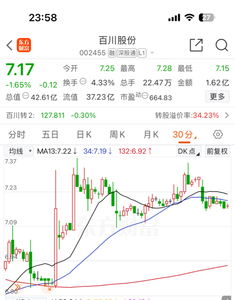 $百川股份(SZ002455)$ 昨天收盘就感觉不对劲,跟亿晶光电的11.17走势一毛一样。割了我一个点。留下的发财。