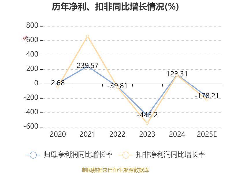 据公告,公司业绩变动原因为, 2025年化工板块主要产品价格在底部区间运行,虽然公司新材料板块在2025年又有部分项目投产,销售收入及利润都大幅提升,但由于部分化工产品价格下跌幅度较大,且化工板块仍是公司的主要板块,因此影响了公司年度利润。