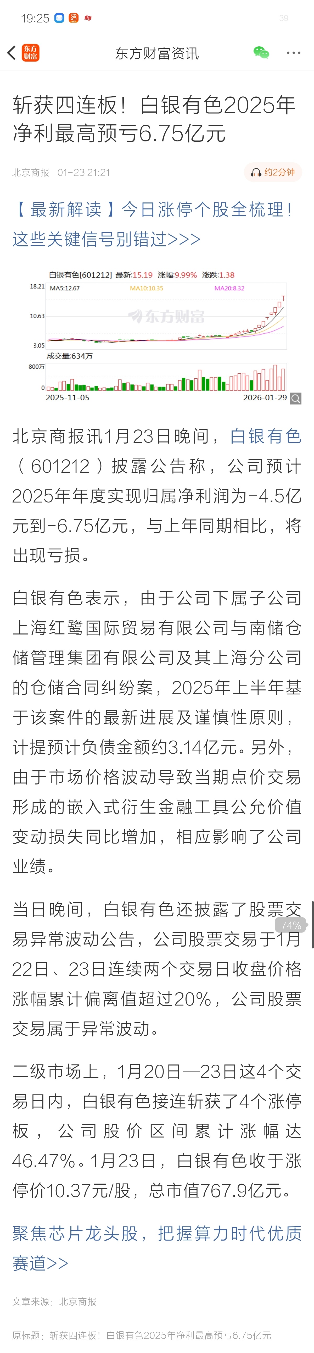 白银有色23号发布预亏4到6亿多,到今天29号八连板了,有什么好慌的,炒股炒的是